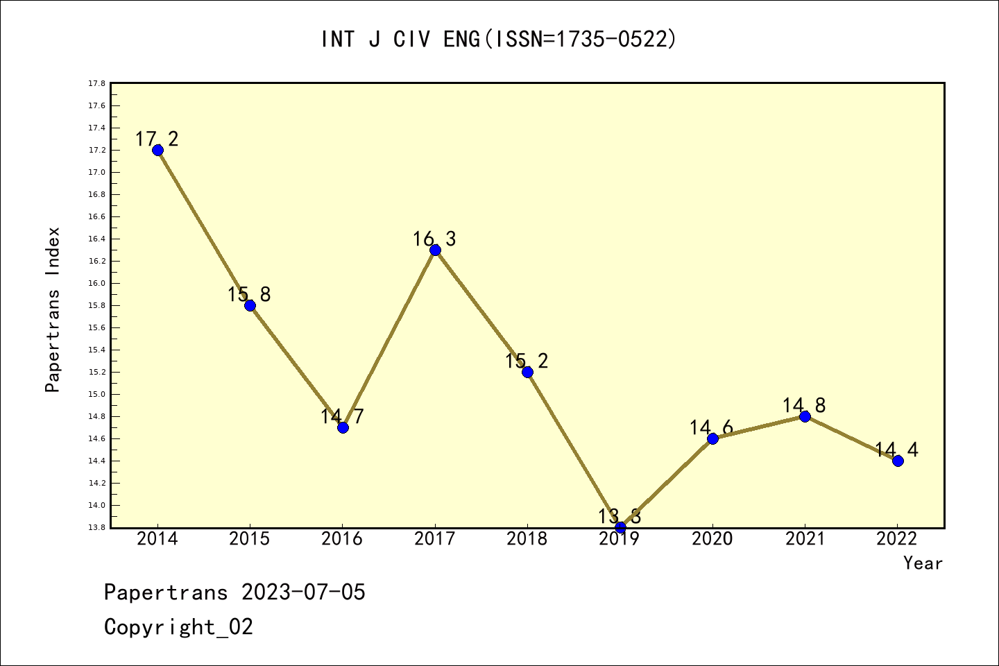 SCIE期刊International Journal of Civil Engineering历年派博系数(Pindex)