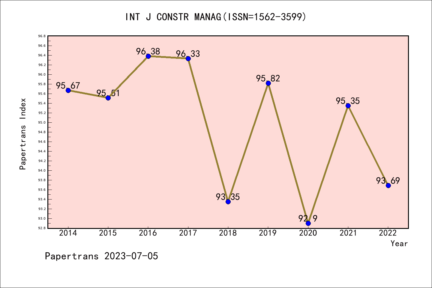 ESCI期刊International Journal of Construction Management历年派博系数(Pindex)