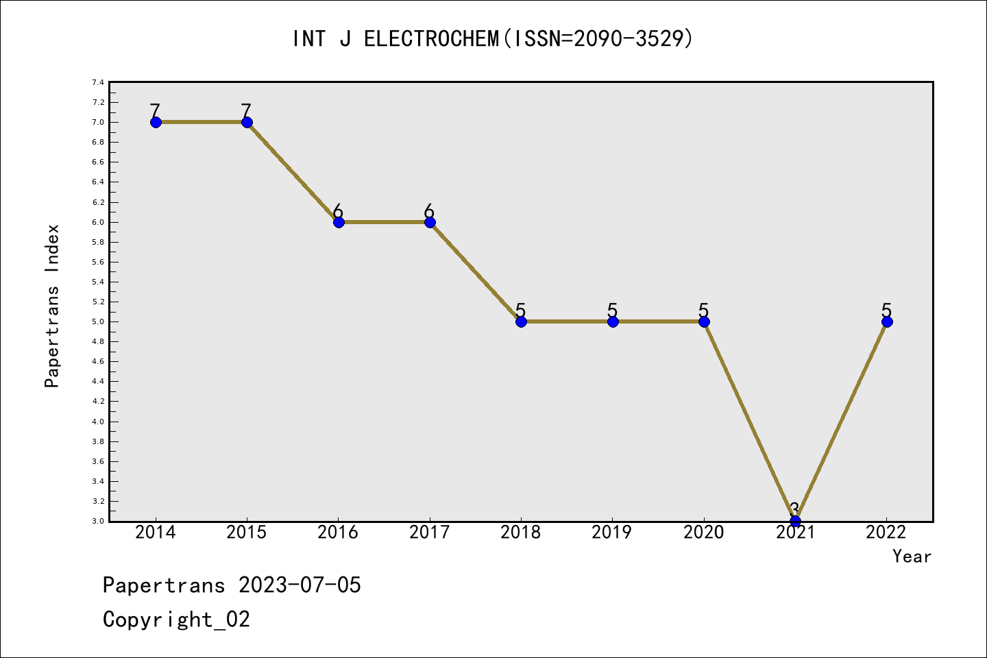 ESCI期刊International Journal of Electrochemistry历年派博系数(Pindex)