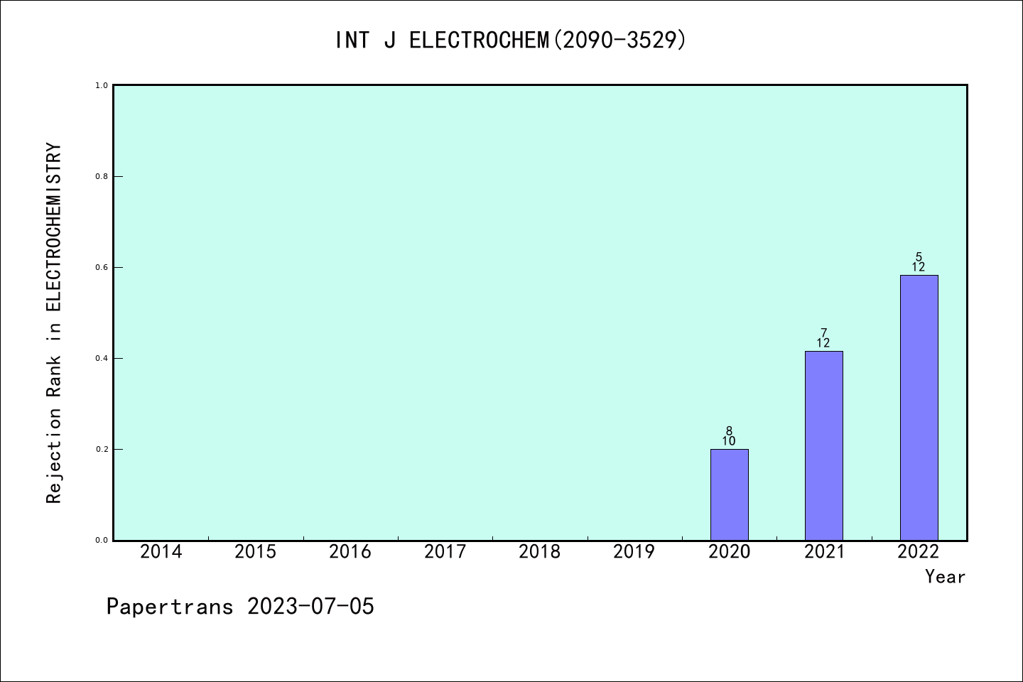 ESCI期刊International Journal of Electrochemistry历年拒稿占比