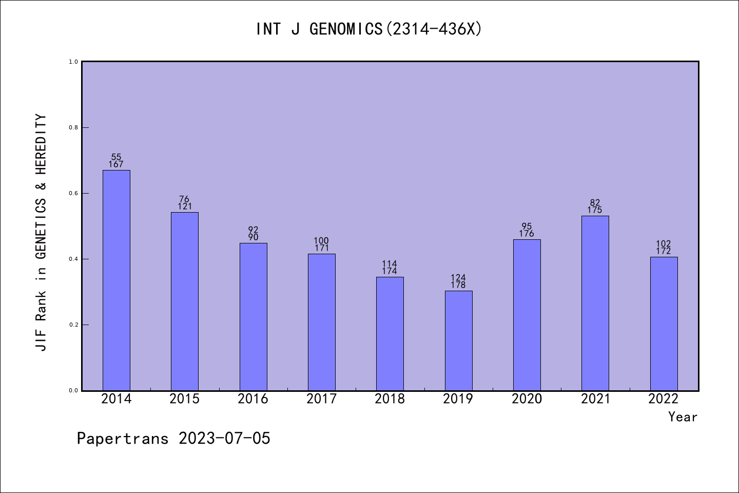 INT J GENOMICS图表质量排名@SCIE遗传学