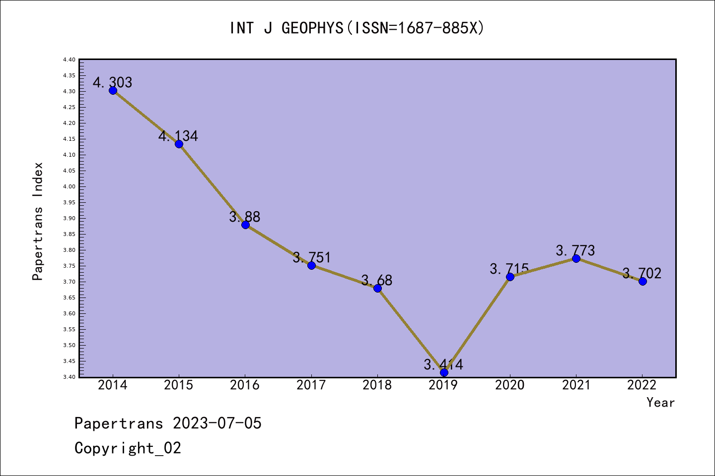 ESCI期刊International Journal of Geophysics历年派博系数(Pindex)