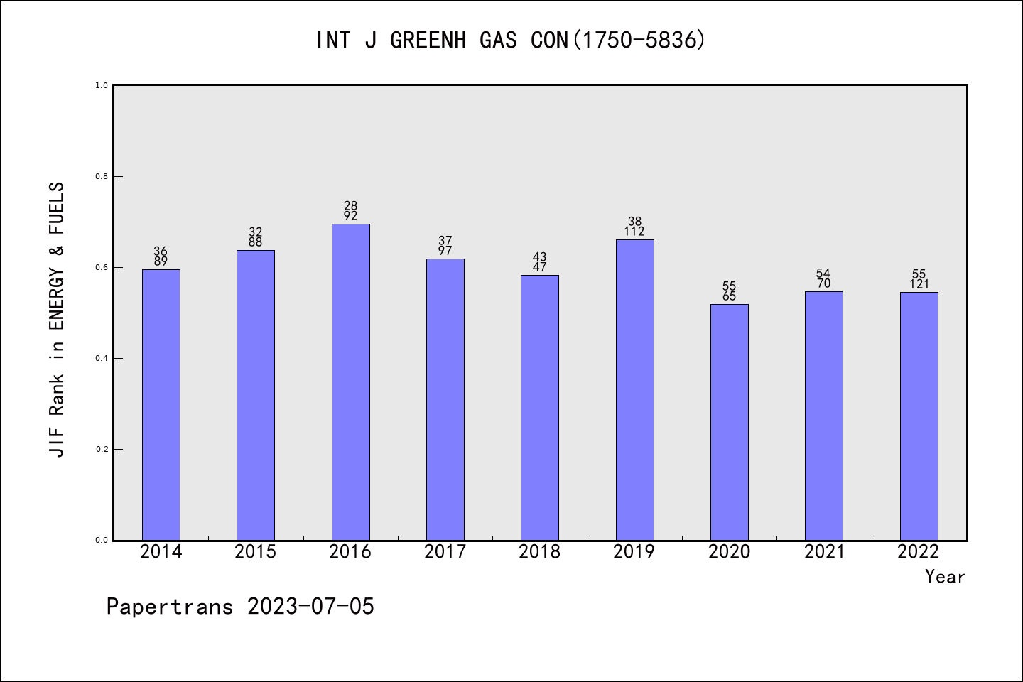 SCIE期刊International Journal of Greenhouse Gas Control历年派博系数(Pindex)