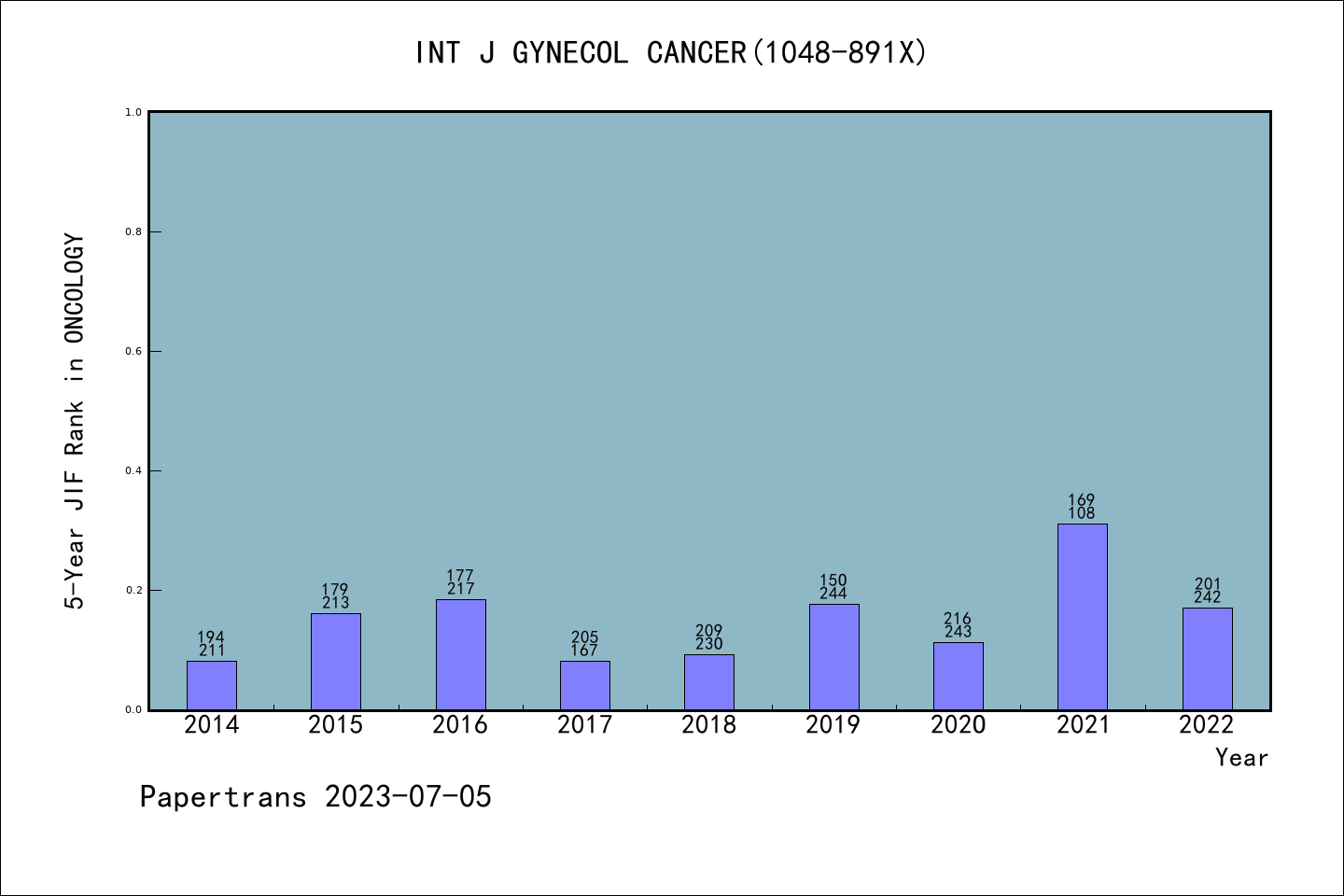 INT J GYNECOL CANCER图表质量排名@SCIE肿瘤学