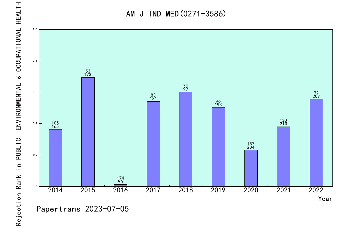 AMERICAN JOURNAL OF INDUSTRIAL MEDICINE拒稿率学科排名@SCIE公共环境和职业健康