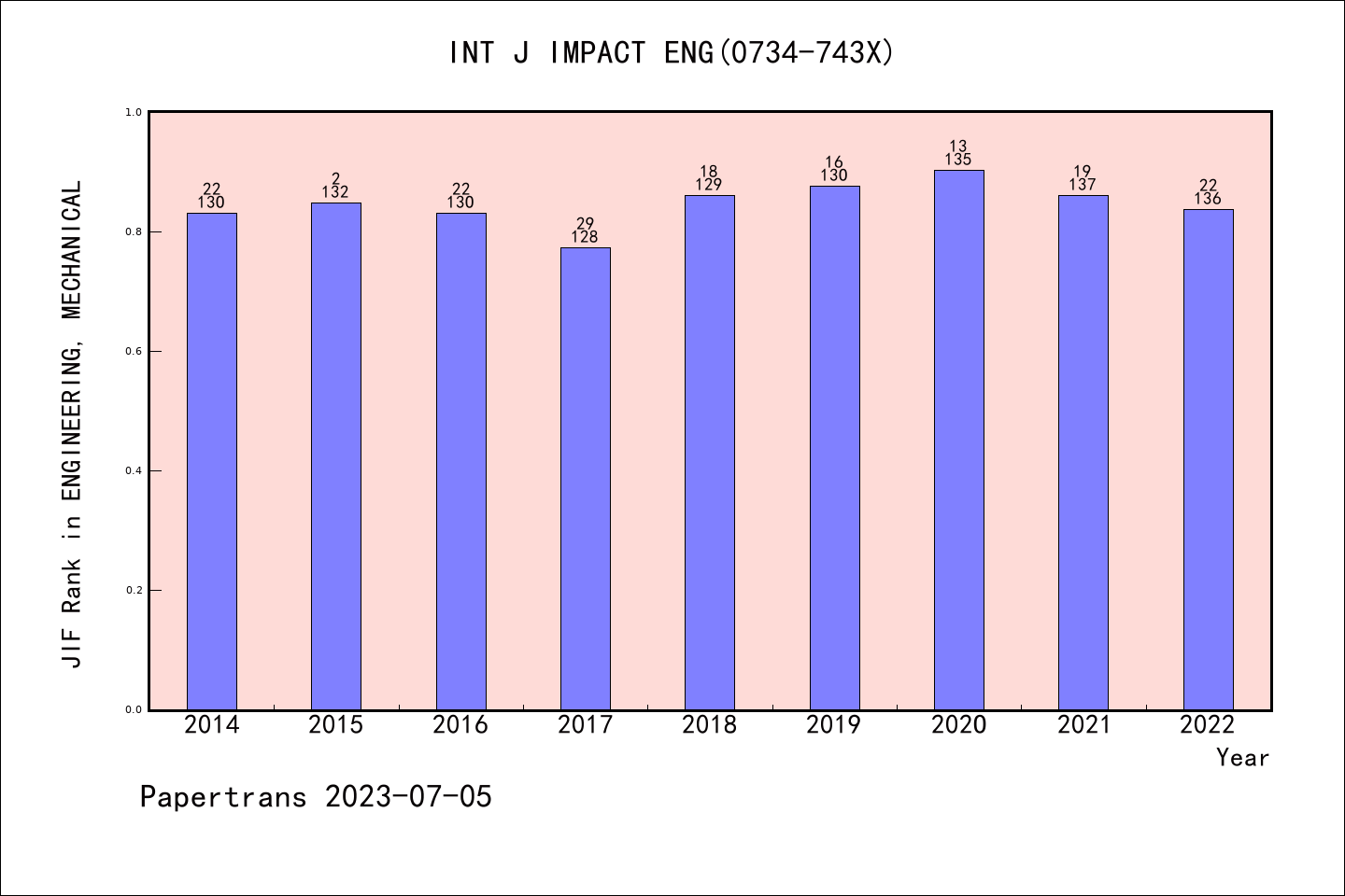 INTERNATIONAL JOURNAL OF IMPACT ENGINEERING派博系数(Pindex)学科排名@SCIE机械工程