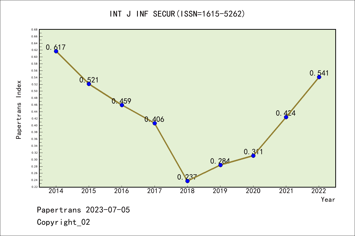 SCIE期刊International Journal of Information Security历年派博系数(Pindex)