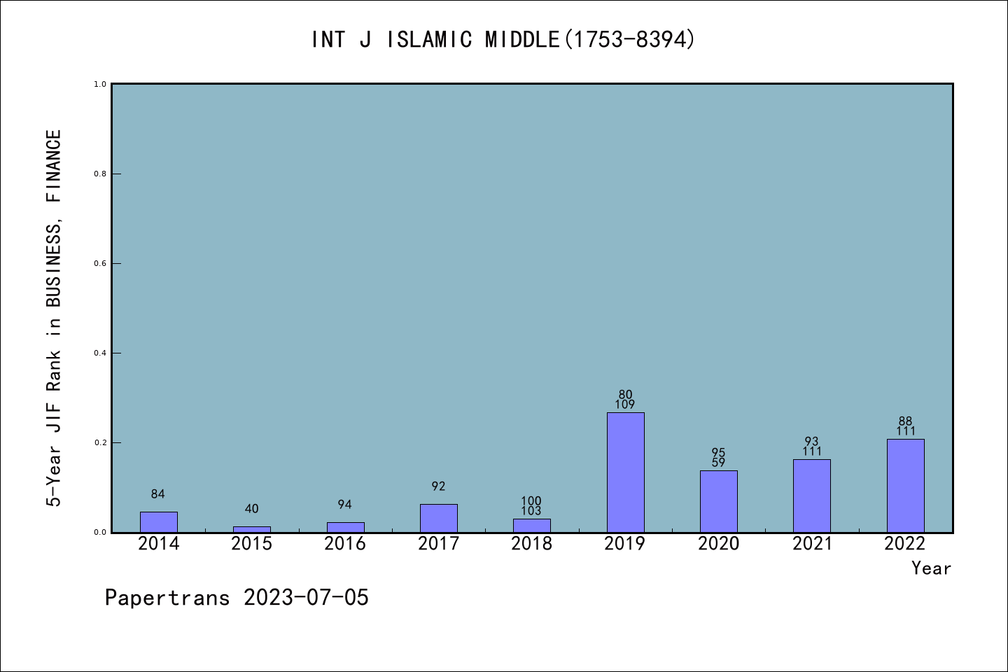 INT J ISLAMIC MIDDLE图表质量排名@SSCI商业、金融