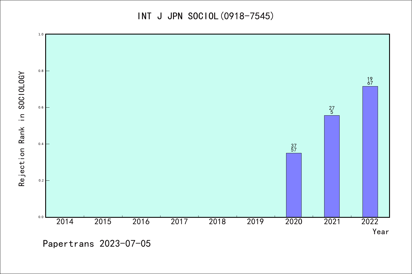 拒稿 占比 | ESCI期刊International Journal of Japanese Sociology历年拒稿占比
