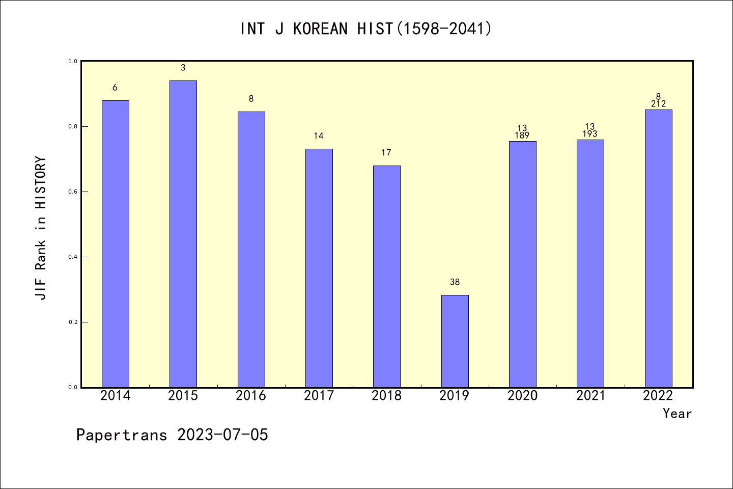 INT J KOREAN HIST图表质量排名@ESCI历史