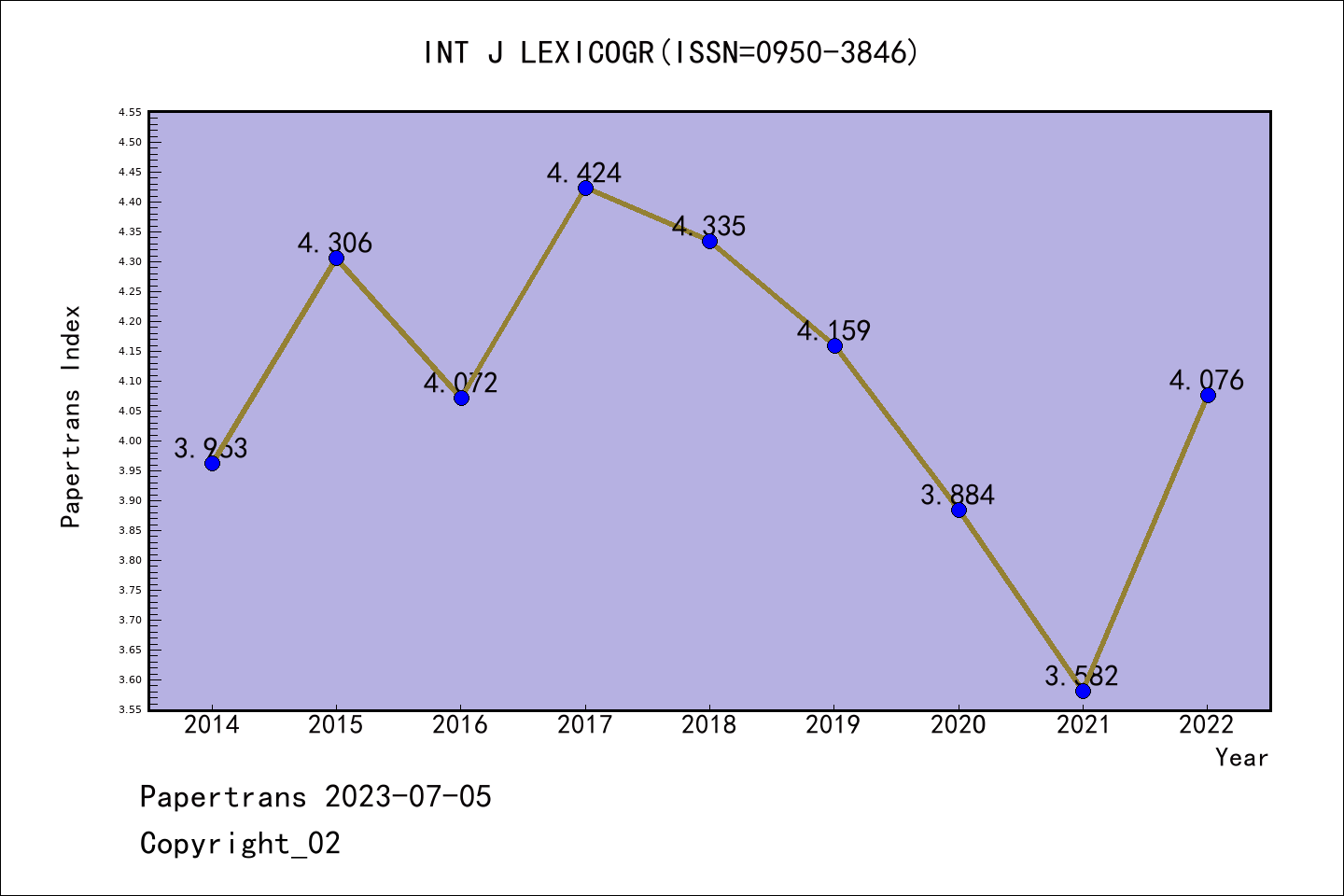 AHCI期刊INTERNATIONAL JOURNAL OF LEXICOGRAPHY历年派博系数(Pindex)