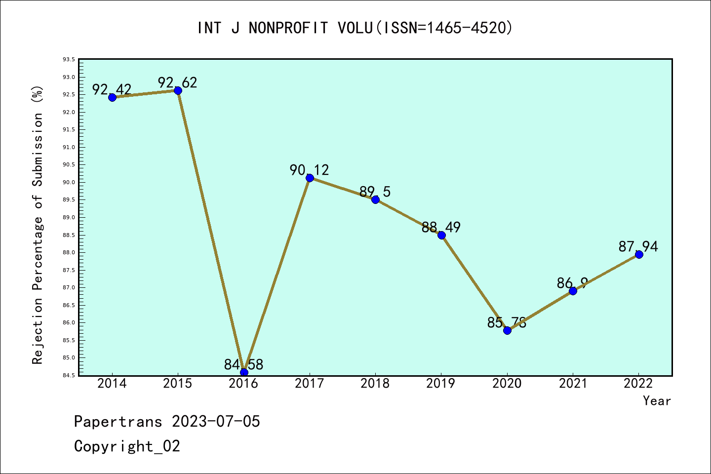 ESCI期刊International Journal of Nonprofit and Voluntary Sector Marketing历年拒稿占比