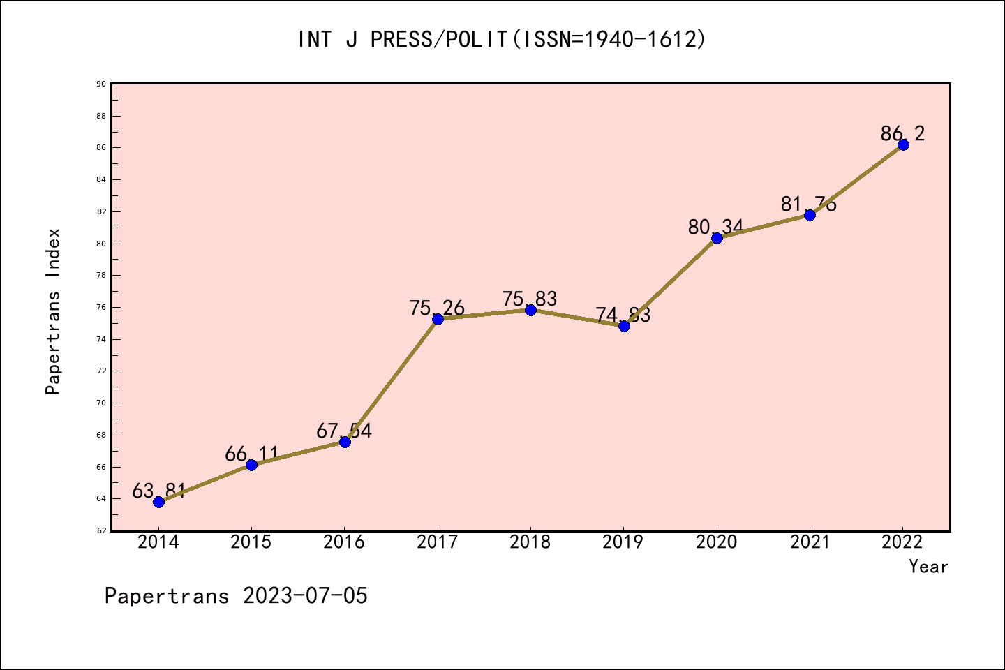 SSCI期刊International Journal of Press-Politics历年派博系数(Pindex)