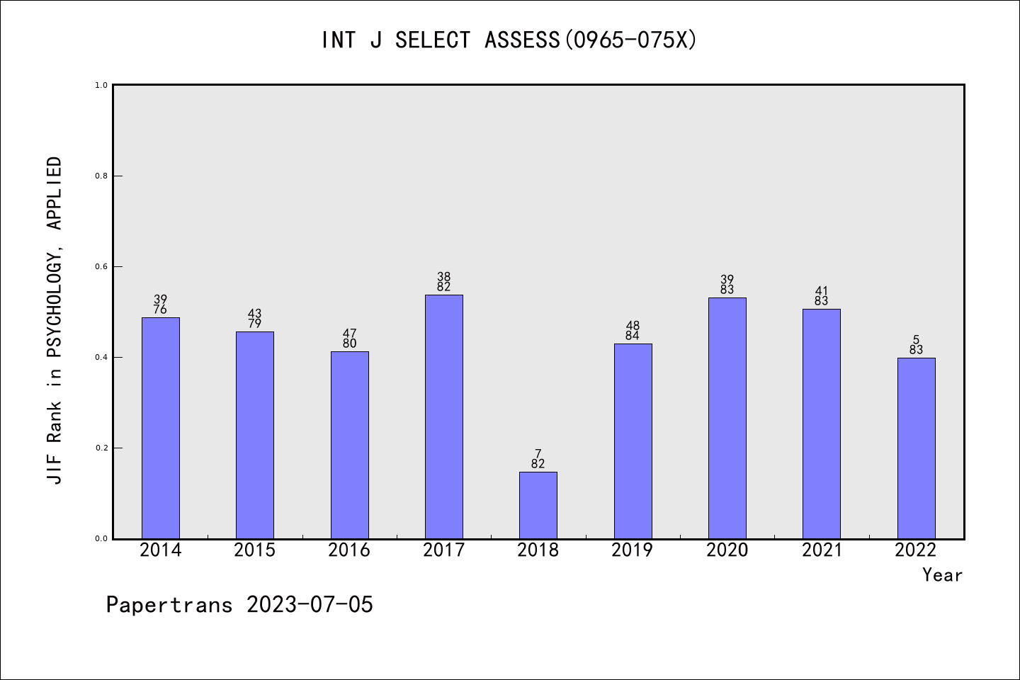 INTERNATIONAL JOURNAL OF SELECTION AND ASSESSMENT拒稿率学科排名@SSCI应用心理学