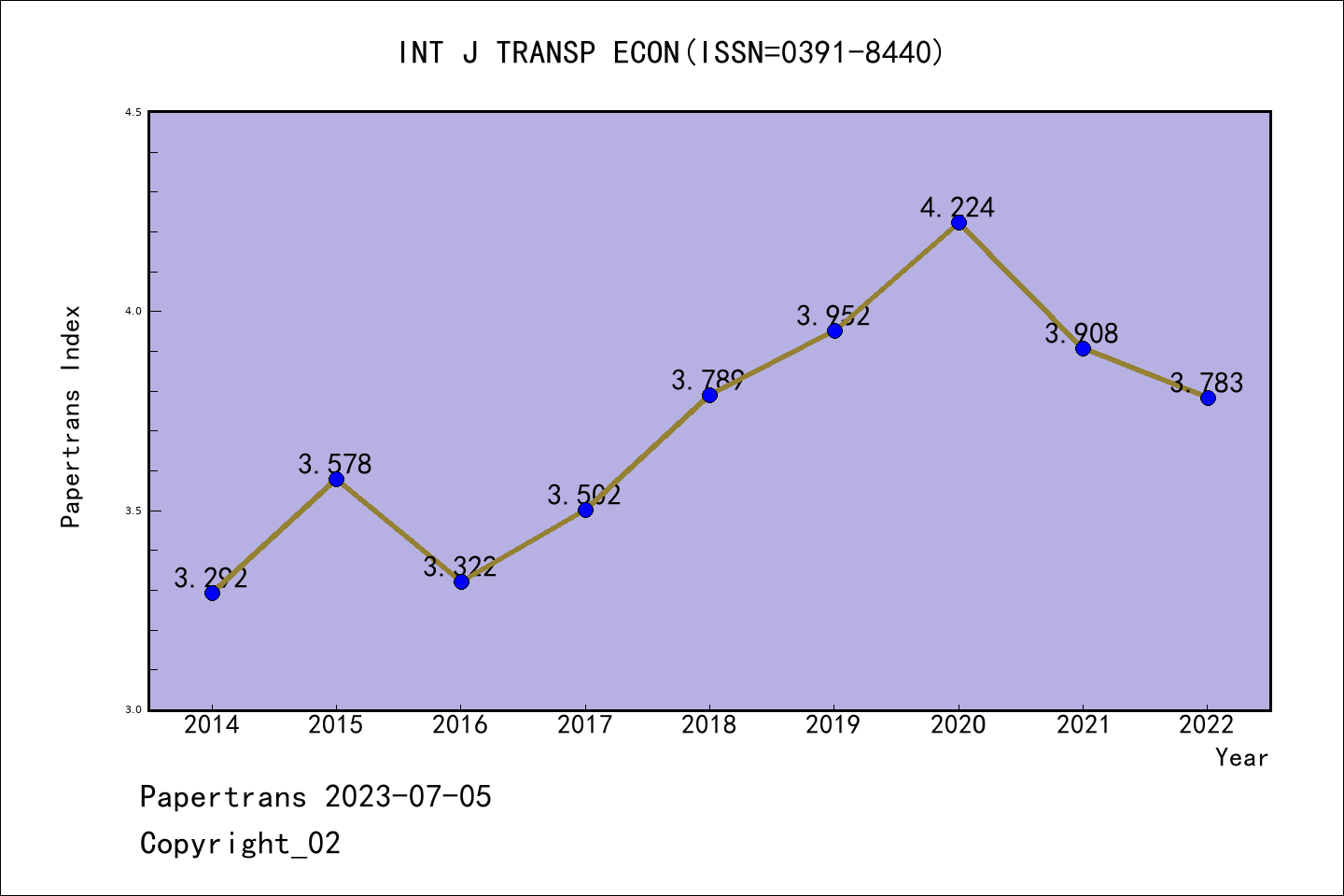 SSCI期刊International Journal of Transport Economics历年派博系数(Pindex)