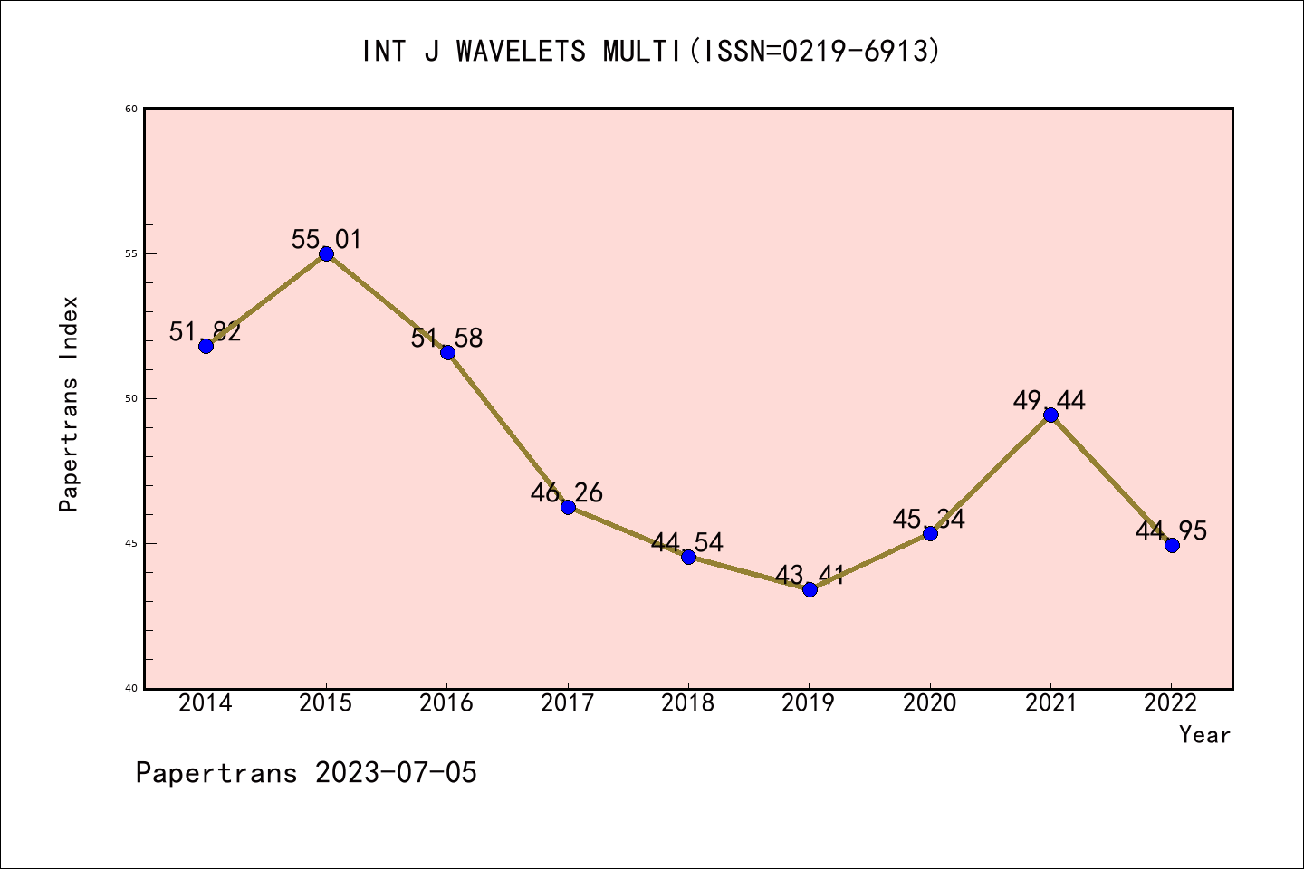SCIE期刊International Journal of Wavelets Multiresolution and Information Processing历年派博系数(Pindex)