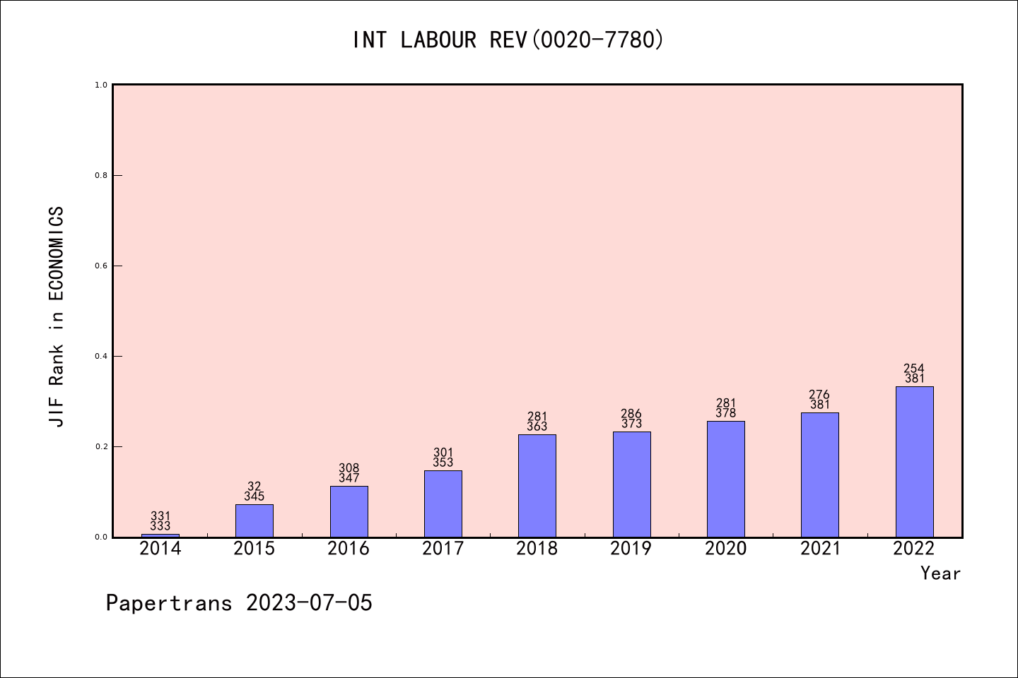 SSCI期刊INTERNATIONAL LABOUR REVIEW历年派博系数(Pindex)