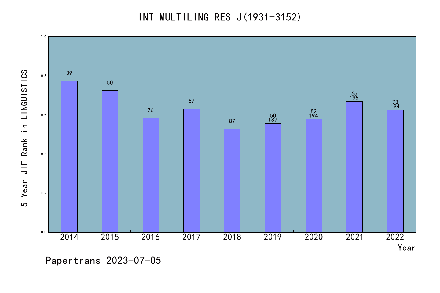 INT MULTILING RES J图表质量排名@SSCI语言学