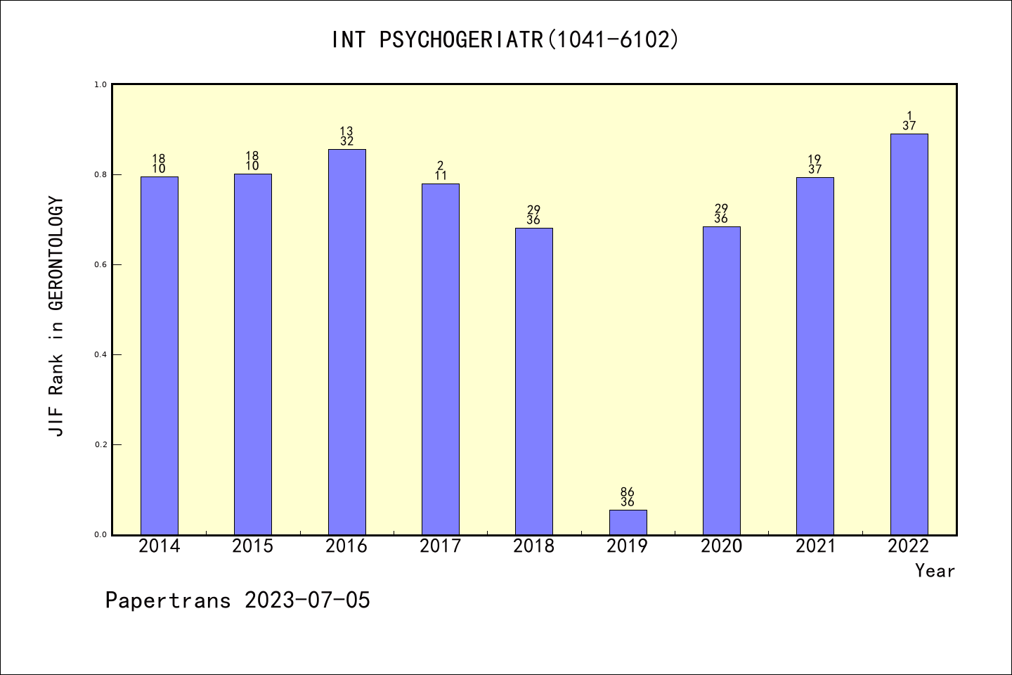 INT PSYCHOGERIATR图表质量排名@SSCI老年病学