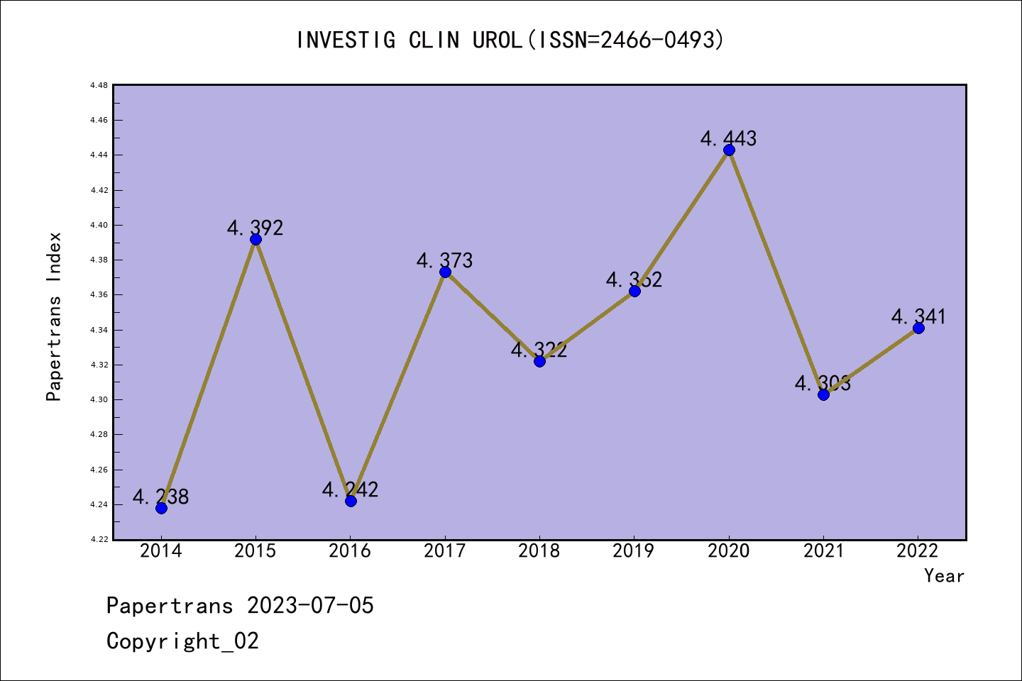 SCIE期刊Investigative and Clinical Urology历年派博系数(Pindex)