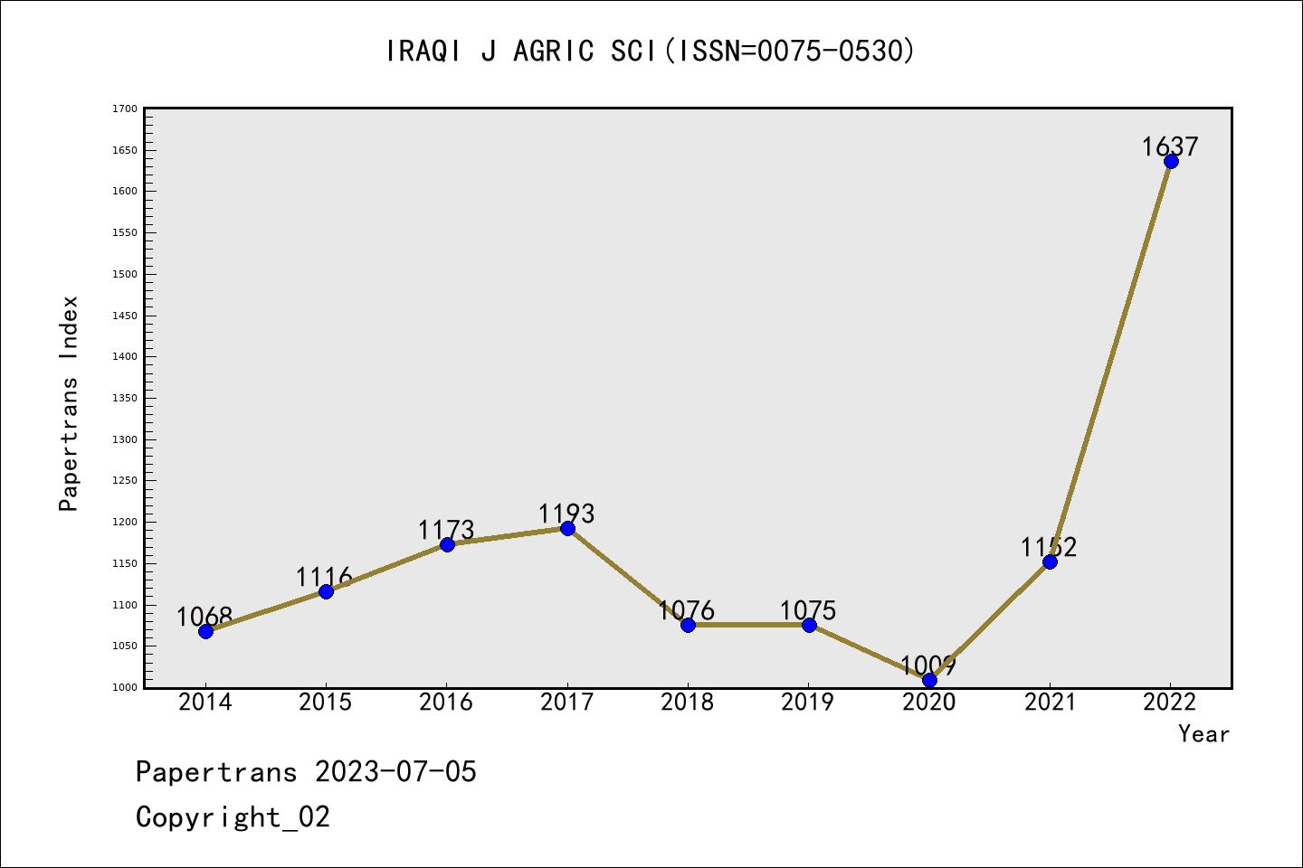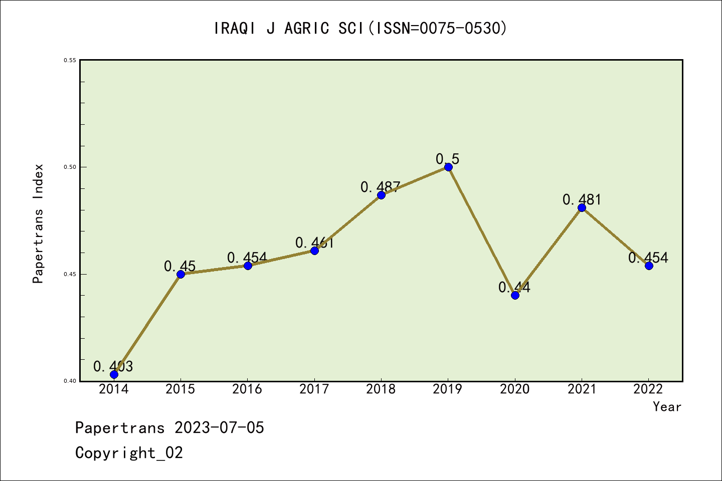 ESCI期刊Iraqi Journal of Agricultural Sciences历年派博系数(Pindex)