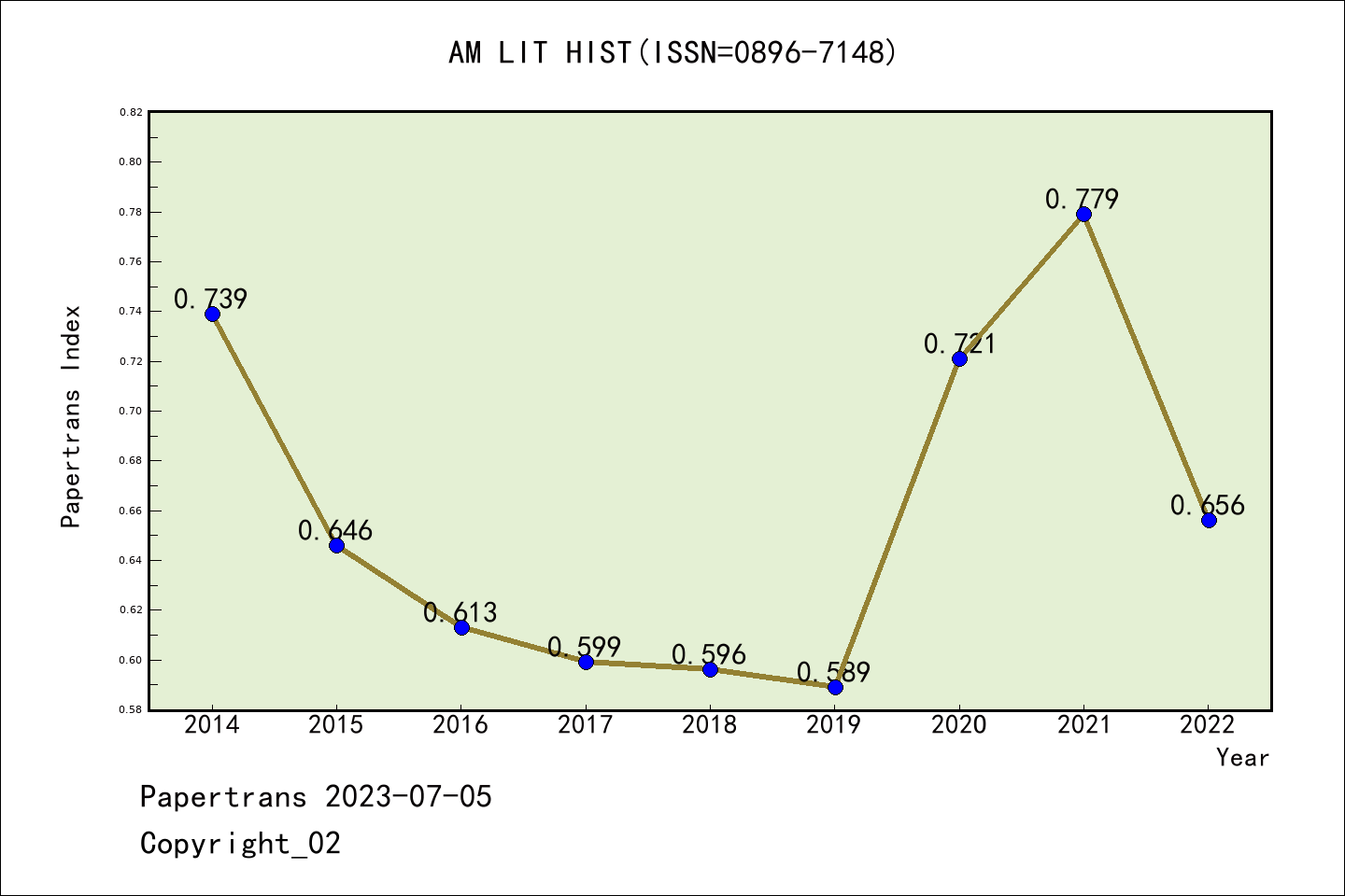 AHCI期刊AMERICAN LITERARY HISTORY历年派博系数(Pindex)