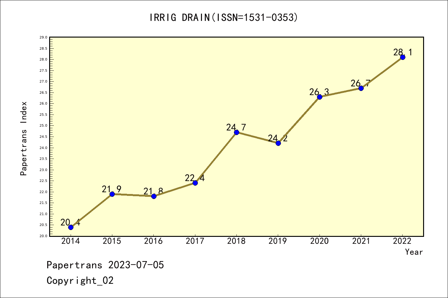 SCIE期刊IRRIGATION AND DRAINAGE历年派博系数(Pindex)