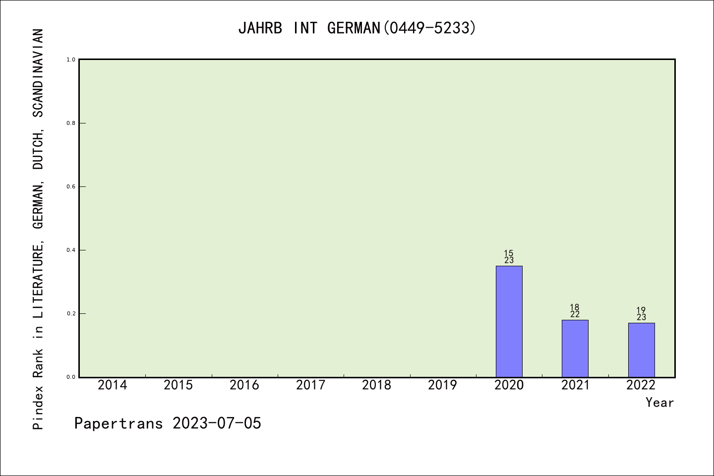 AHCI期刊JAHRBUCH FUR INTERNATIONALE GERMANISTIK历年派博系数(Pindex)