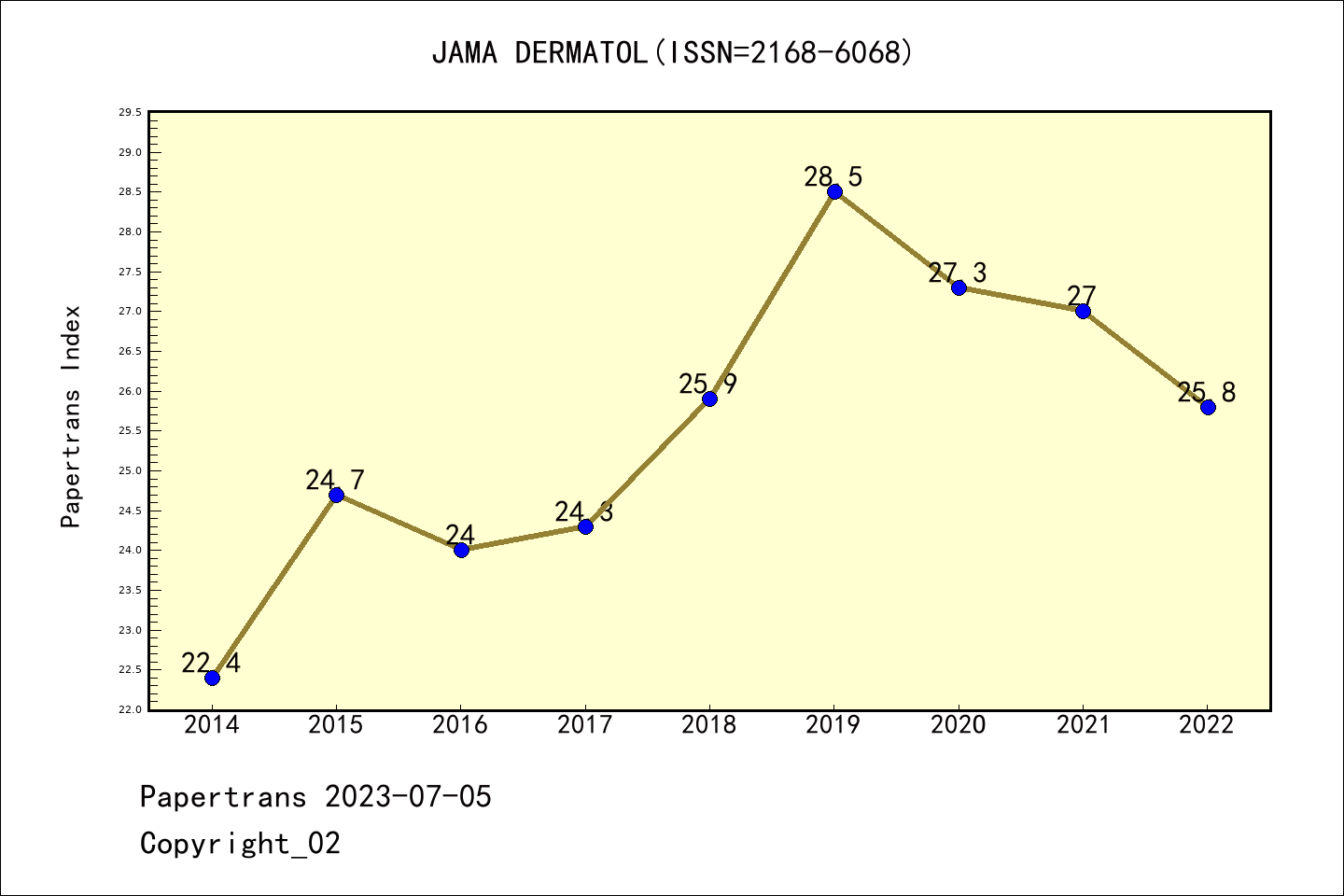 SCIE期刊JAMA Dermatology历年派博系数(Pindex)