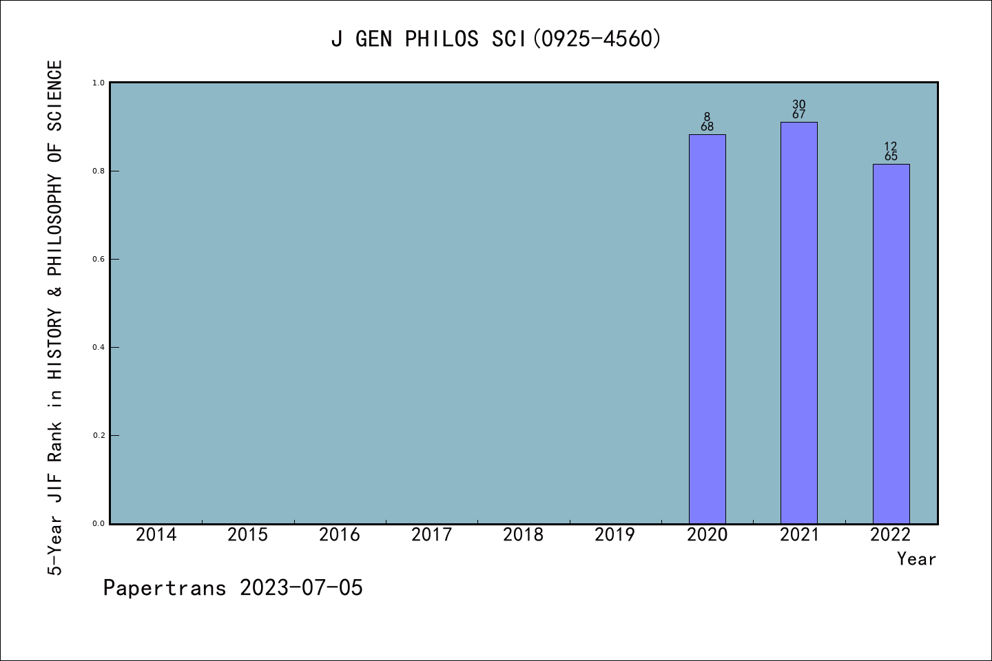 Journal for General Philosophy of Science派博系数(Pindex)学科排名@AHCI历史与科学哲学