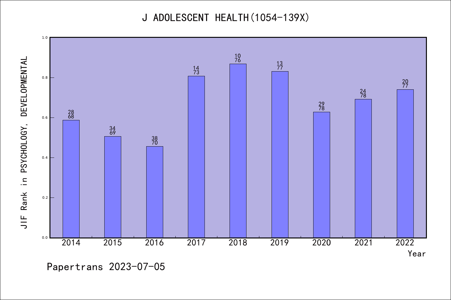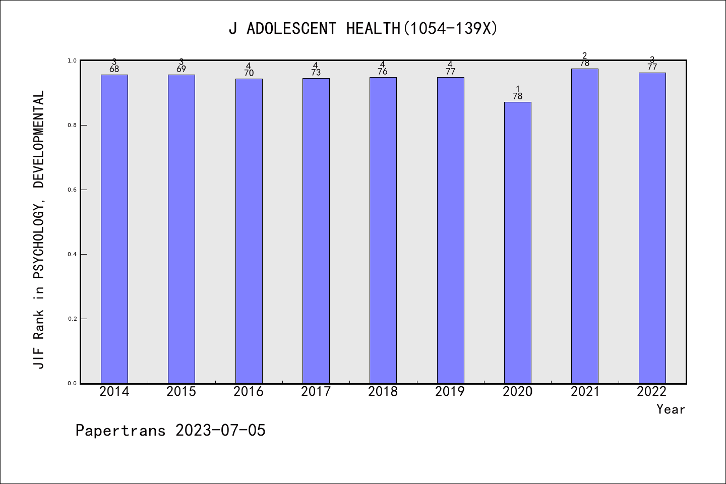 Journal of Adolescent Health派博系数(Pindex)学科排名@SSCI发展心理学