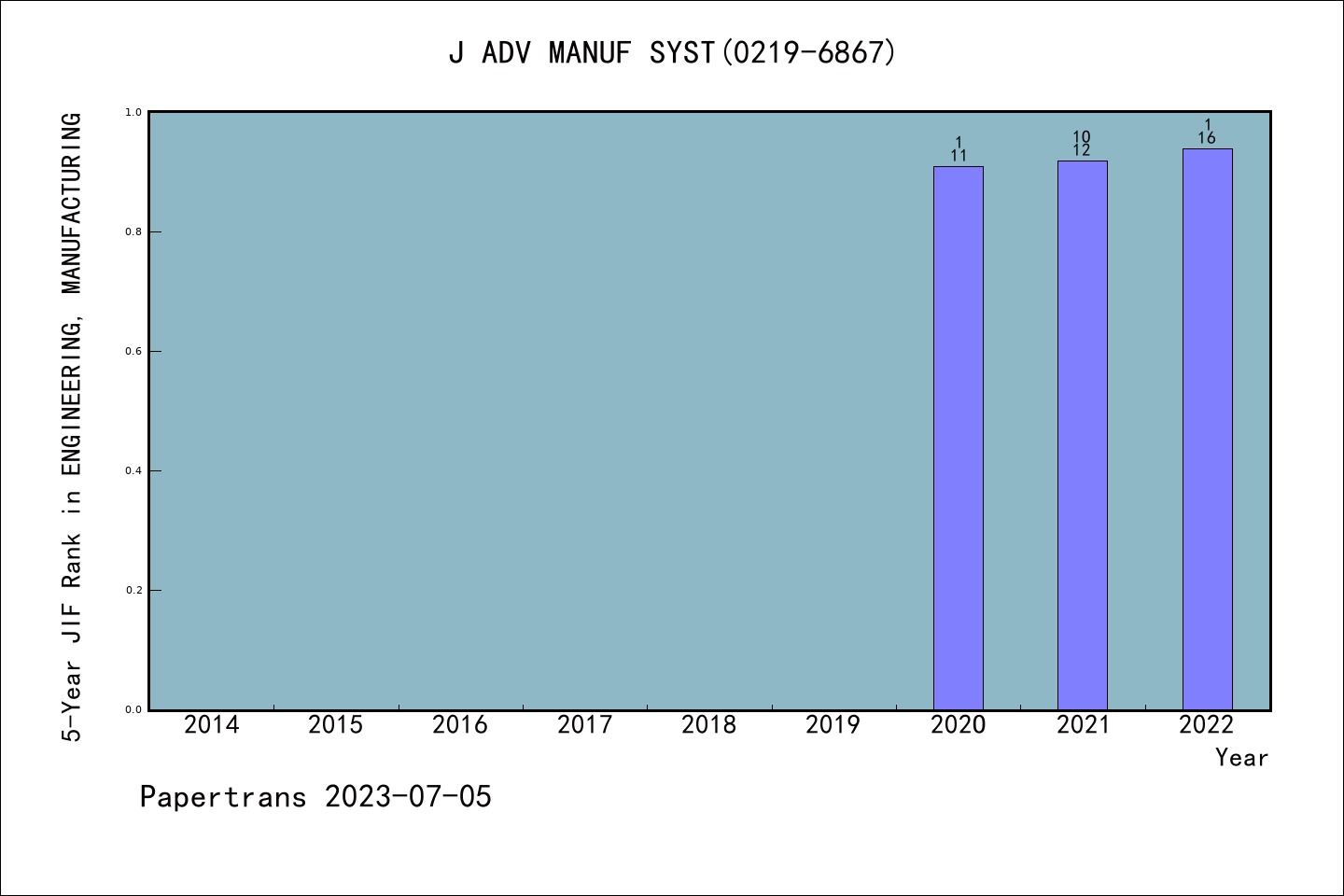 Journal of Advanced Manufacturing Systems派博系数(Pindex)学科排名@ESCI制造工程