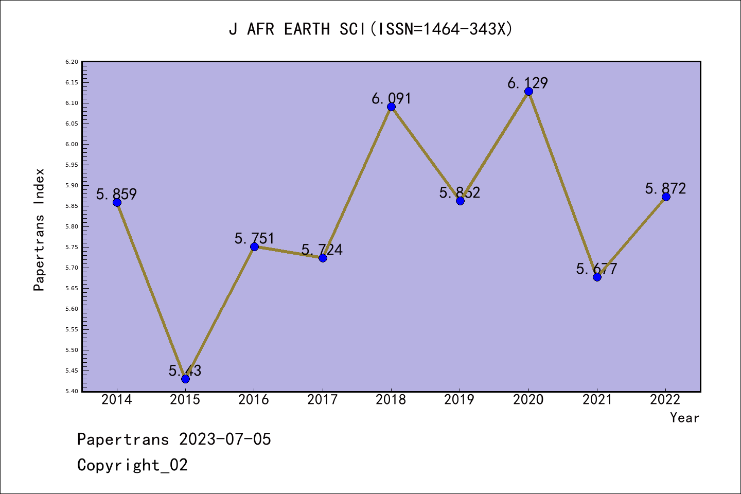 SCIE期刊JOURNAL OF AFRICAN EARTH SCIENCES历年派博系数(Pindex)
