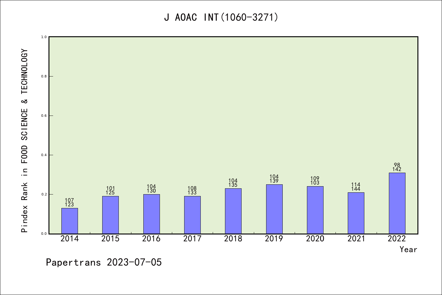 SCIE期刊JOURNAL OF AOAC INTERNATIONAL历年派博系数(Pindex)