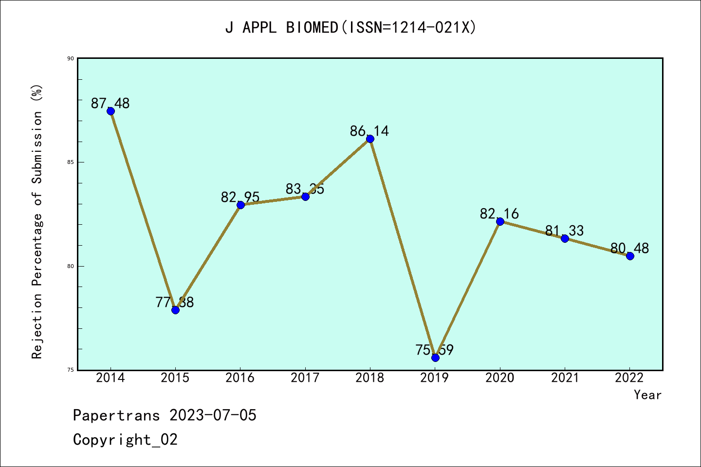 SCIE期刊Journal of Applied Biomedicine历年拒稿占比