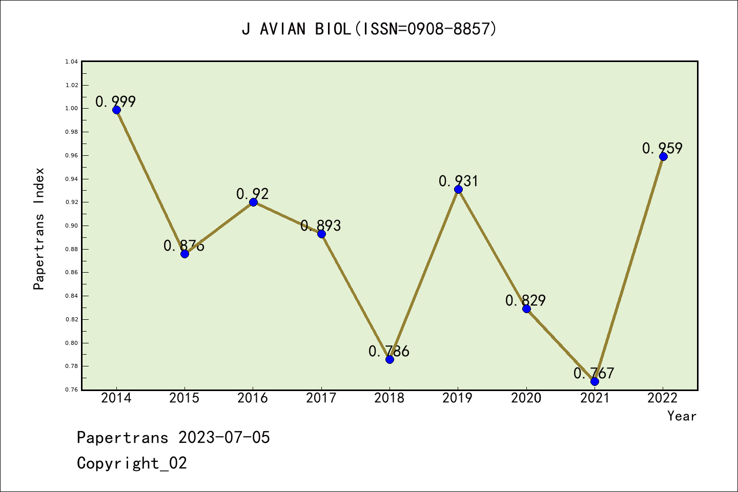 SCIE期刊JOURNAL OF AVIAN BIOLOGY历年派博系数(Pindex)
