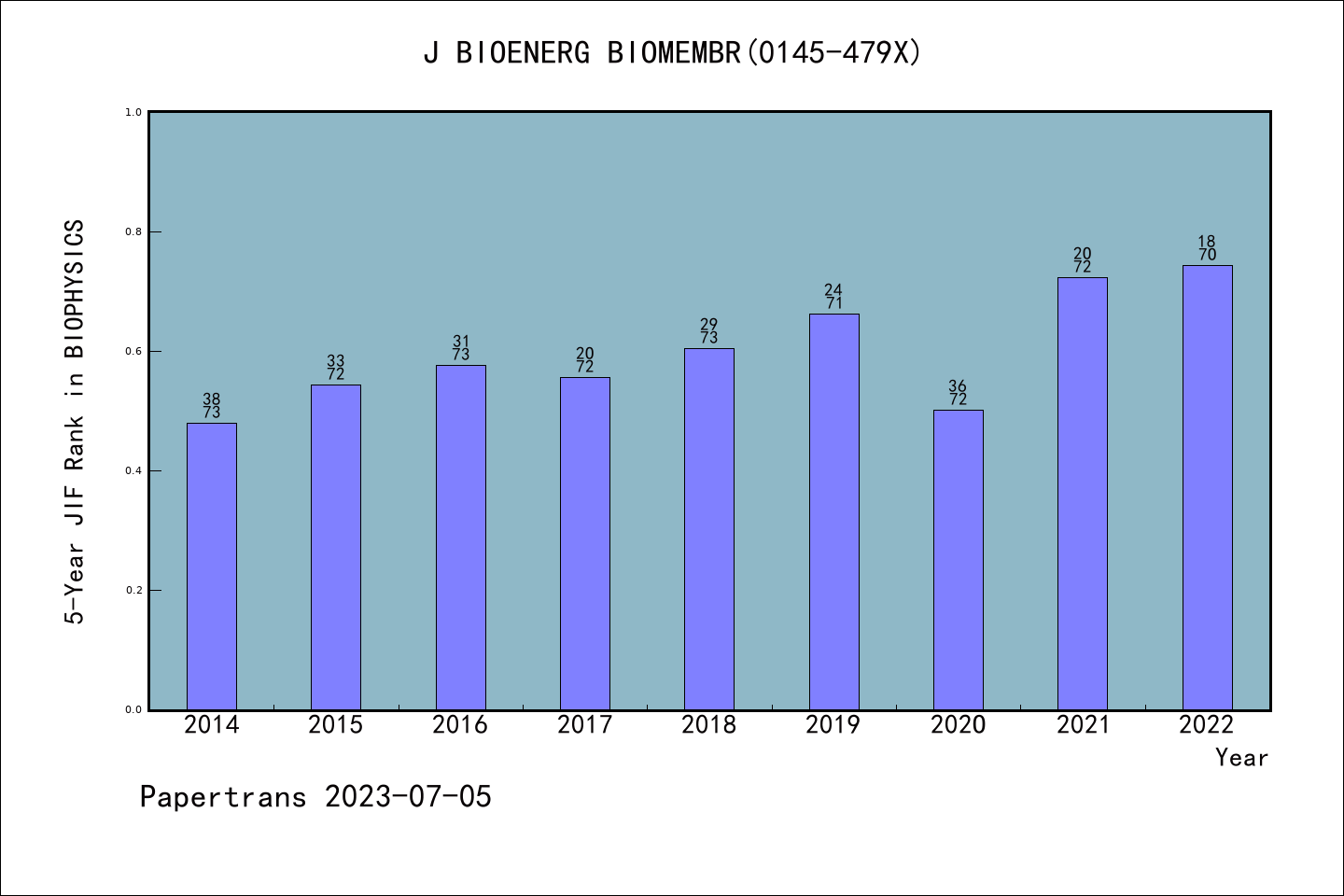 派博 系数 | SCIE期刊JOURNAL OF BIOENERGETICS AND BIOMEMBRANES历年派博系数(Pindex)