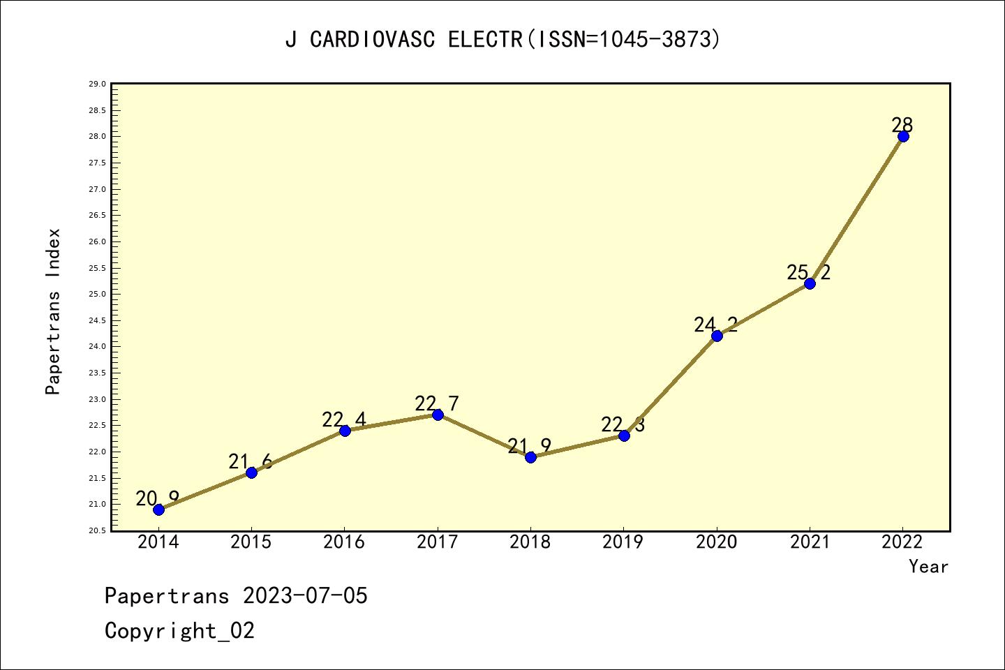 SCIE期刊JOURNAL OF CARDIOVASCULAR ELECTROPHYSIOLOGY历年派博系数(Pindex)