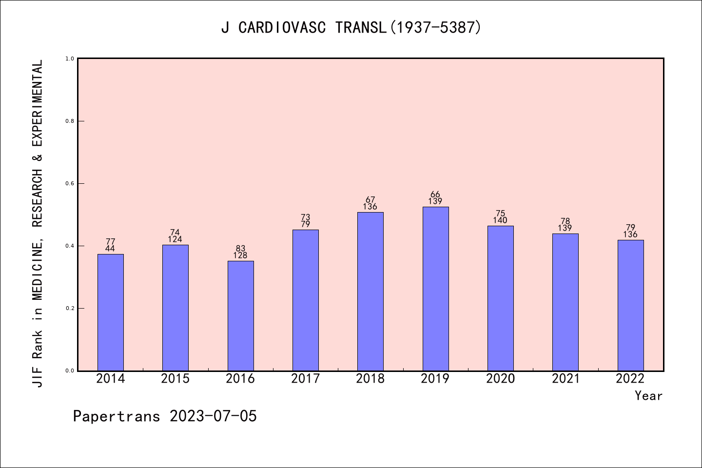 J CARDIOVASC TRANSL图表质量排名@SCIE医学研究与实验