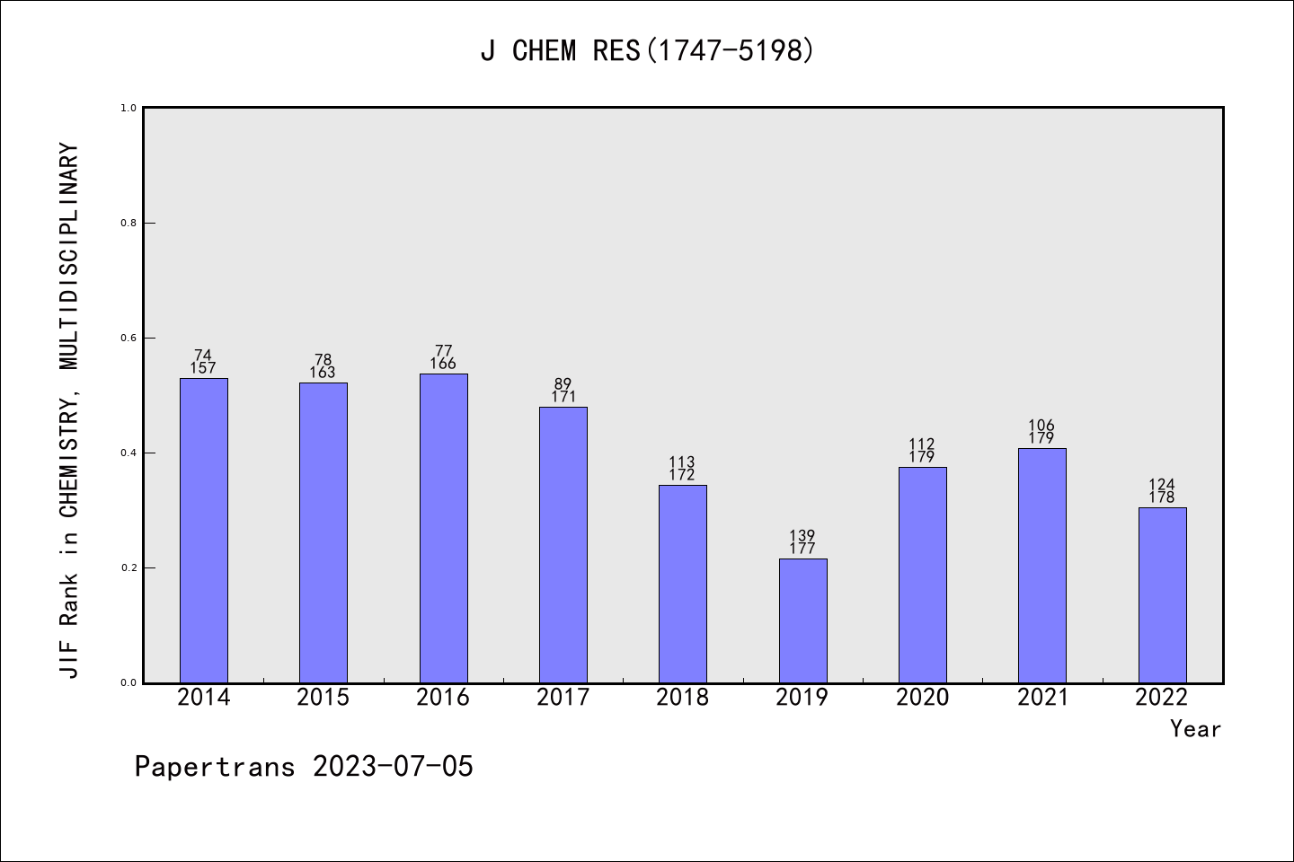 SCIE期刊JOURNAL OF CHEMICAL RESEARCH历年派博系数(Pindex)