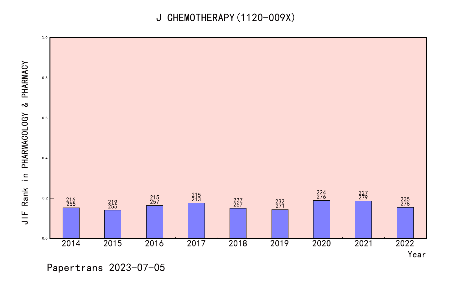 SCIE期刊JOURNAL OF CHEMOTHERAPY历年派博系数(Pindex)