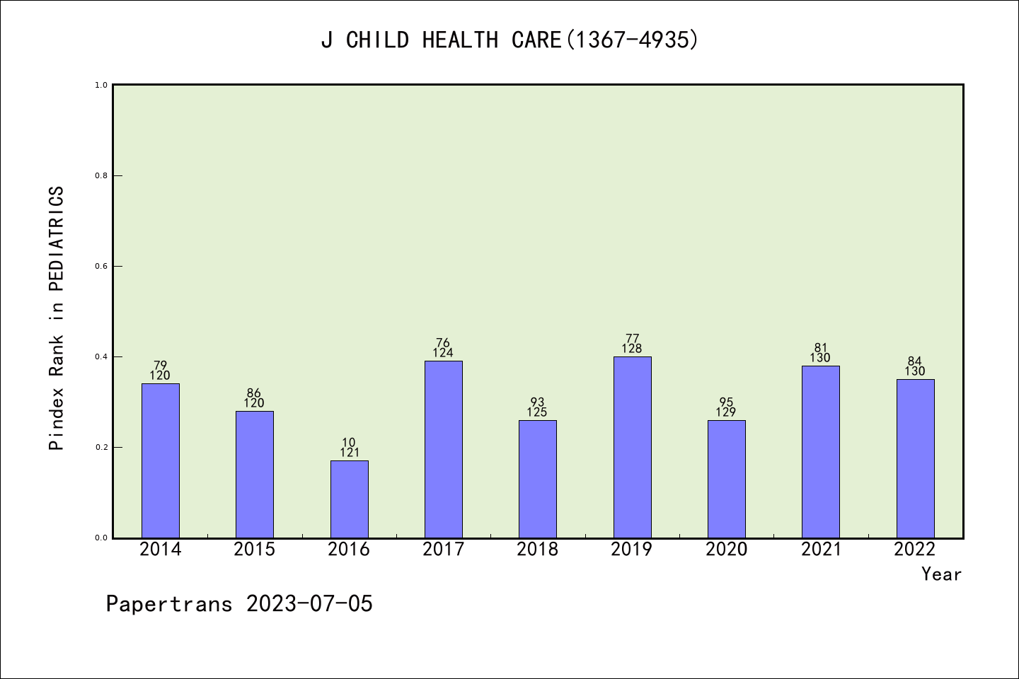 Journal of Child Health Care派博系数(Pindex)学科排名@SCIE儿科