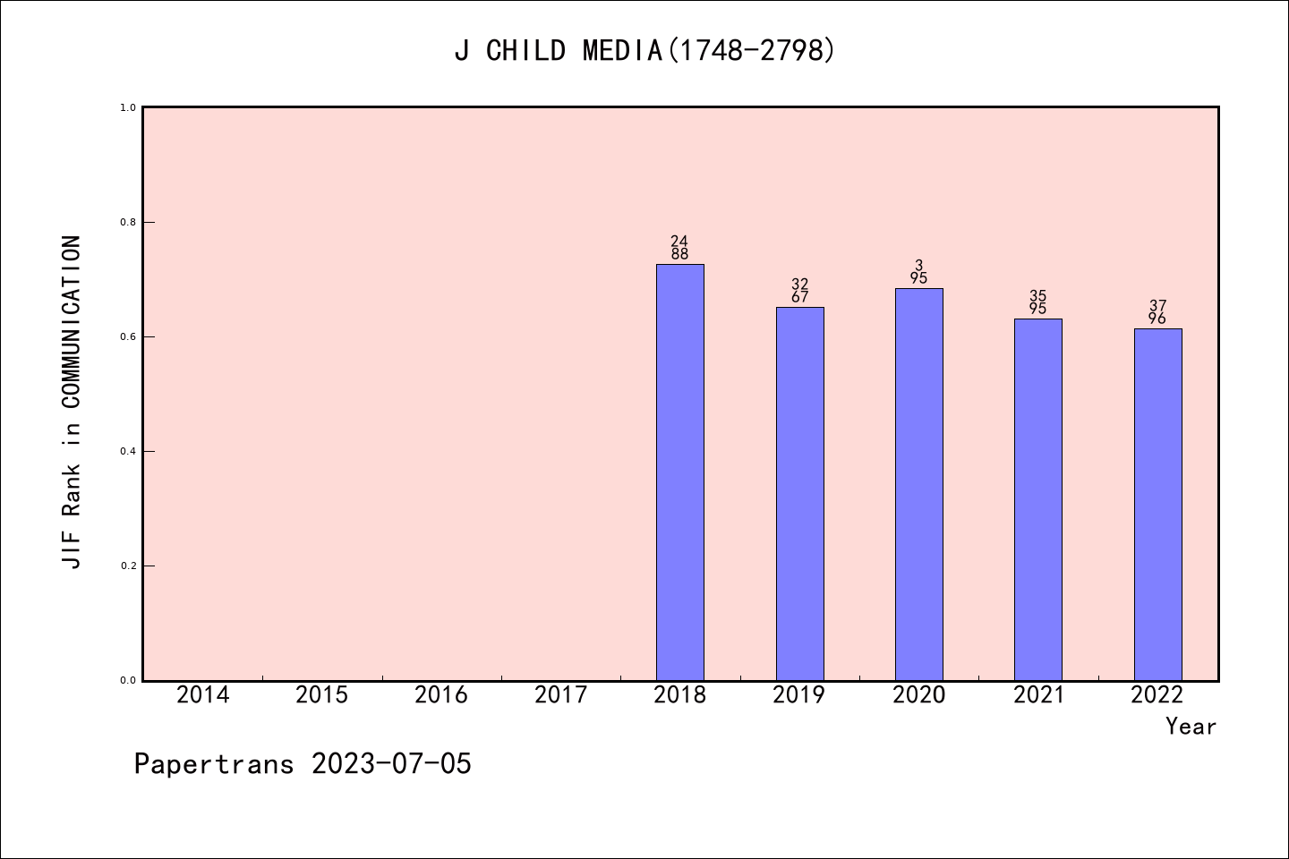 SSCI期刊Journal of Children and Media历年派博系数(Pindex)