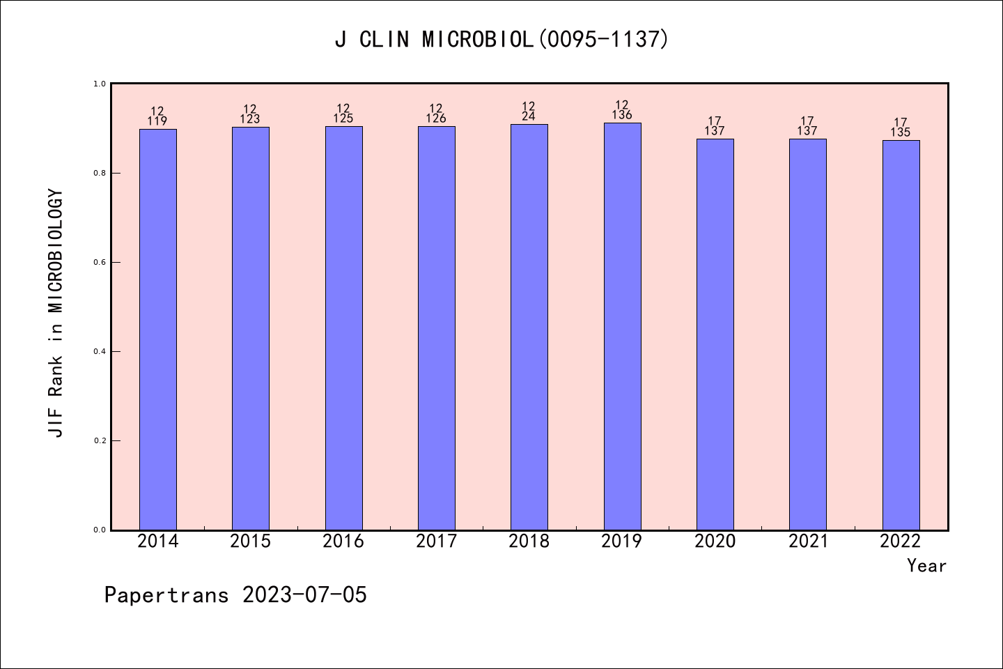 JOURNAL OF CLINICAL MICROBIOLOGY派博系数(Pindex)学科排名@SCIE微生物学