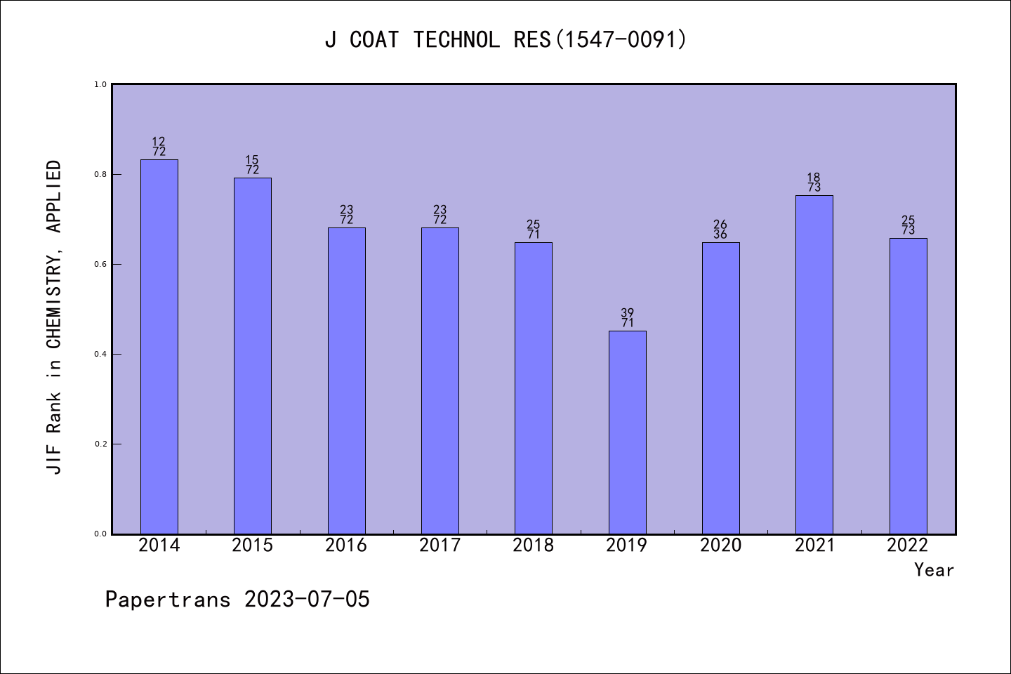 J COAT TECHNOL RES图表质量排名@SCIE化学,应用