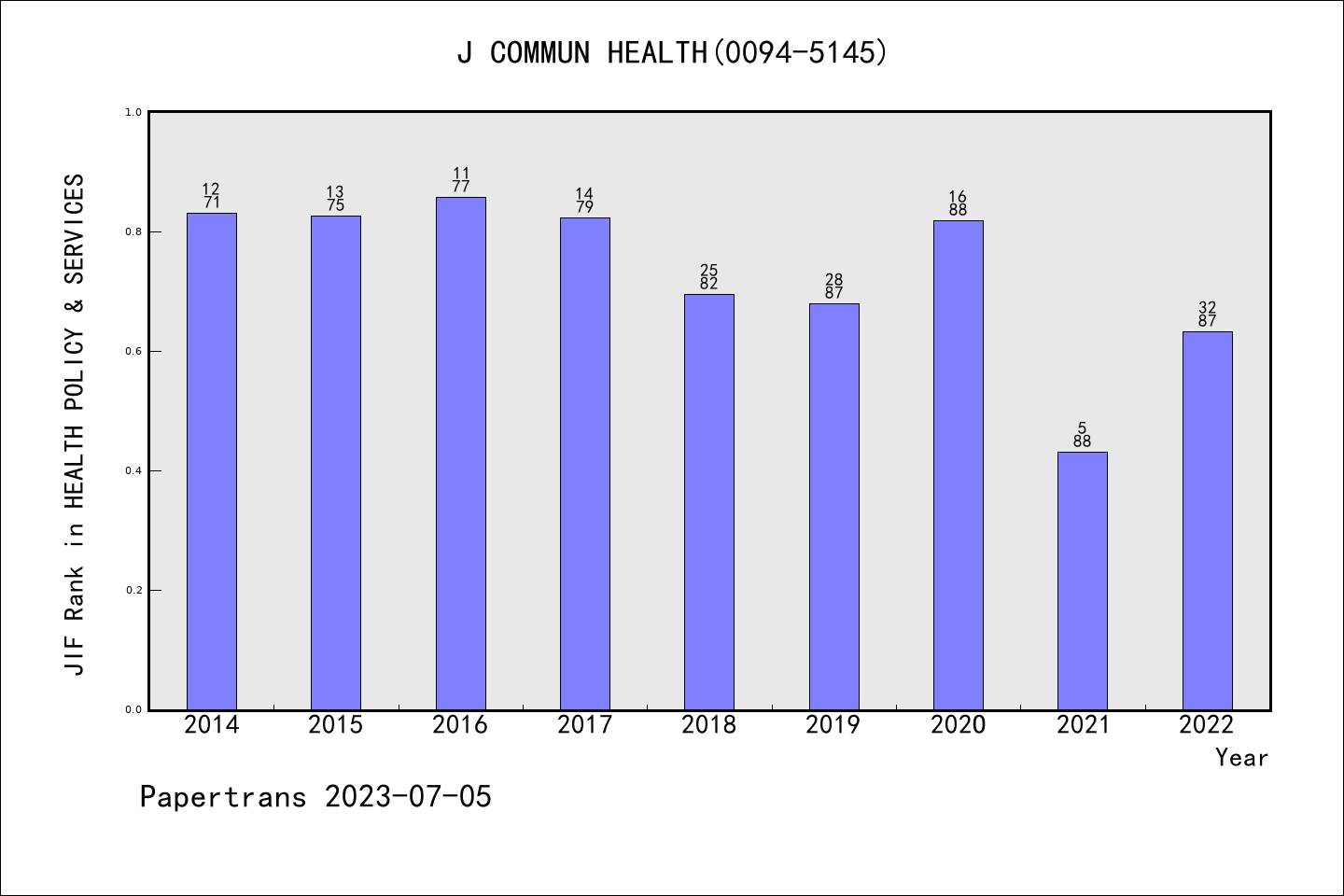 J COMMUN HEALTH图表质量排名@SSCI卫生政策与服务
