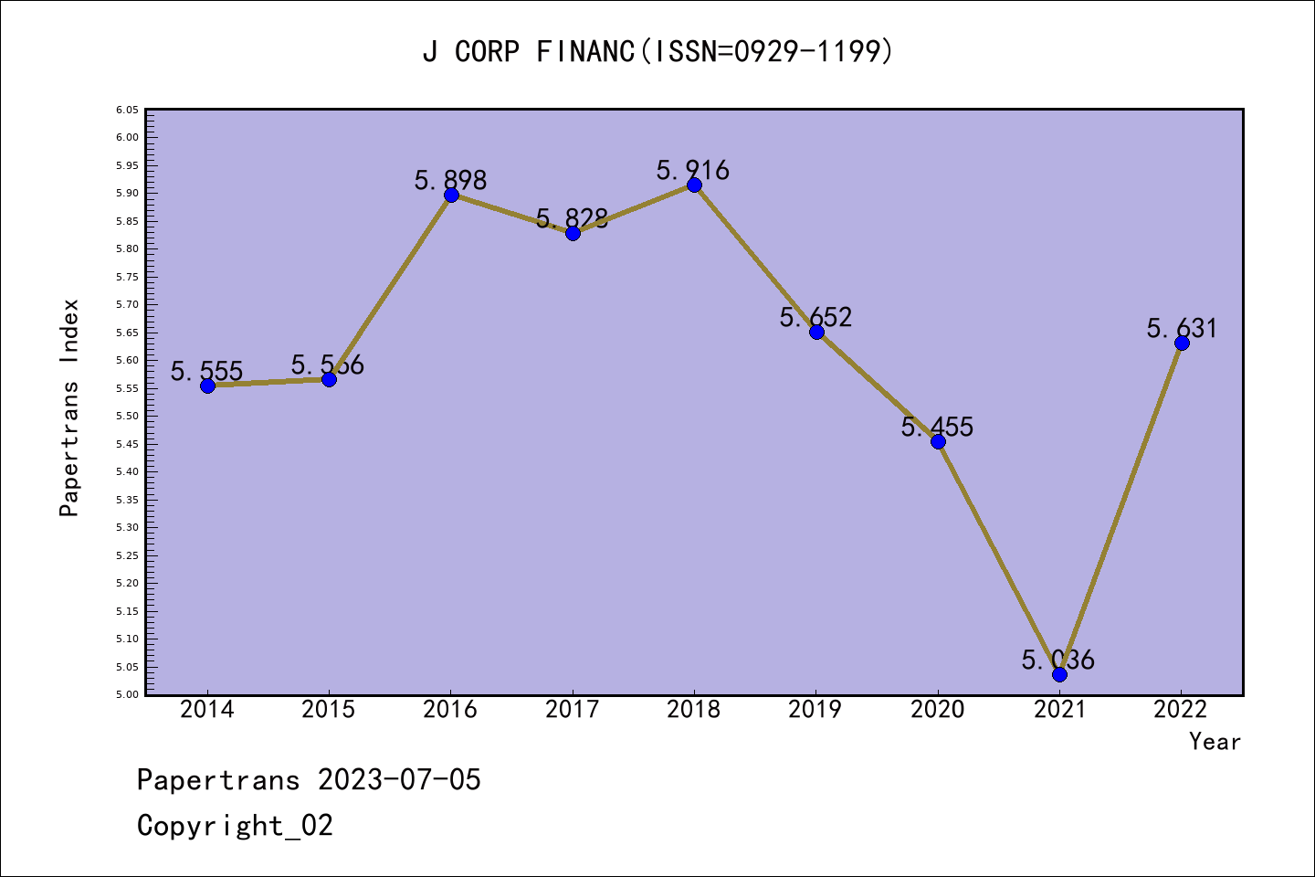 SSCI期刊JOURNAL OF CORPORATE FINANCE历年派博系数(Pindex)