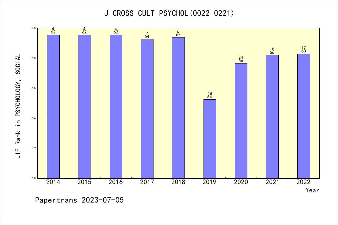J CROSS CULT PSYCHOL图表质量排名@SSCI心理学、社会学