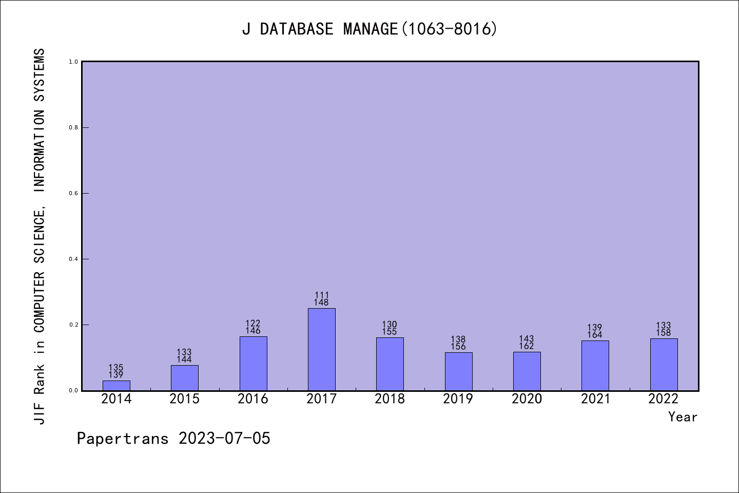 J DATABASE MANAGE图表质量排名@SCIE计算机科学、信息系统