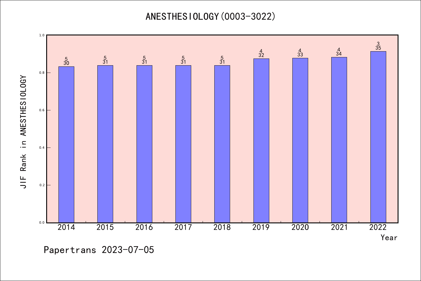 ANESTHESIOLOGY拒稿率学科排名@SCIE麻醉学